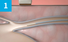 얇은 카테터(관)를 혈관에 삽입합니다.